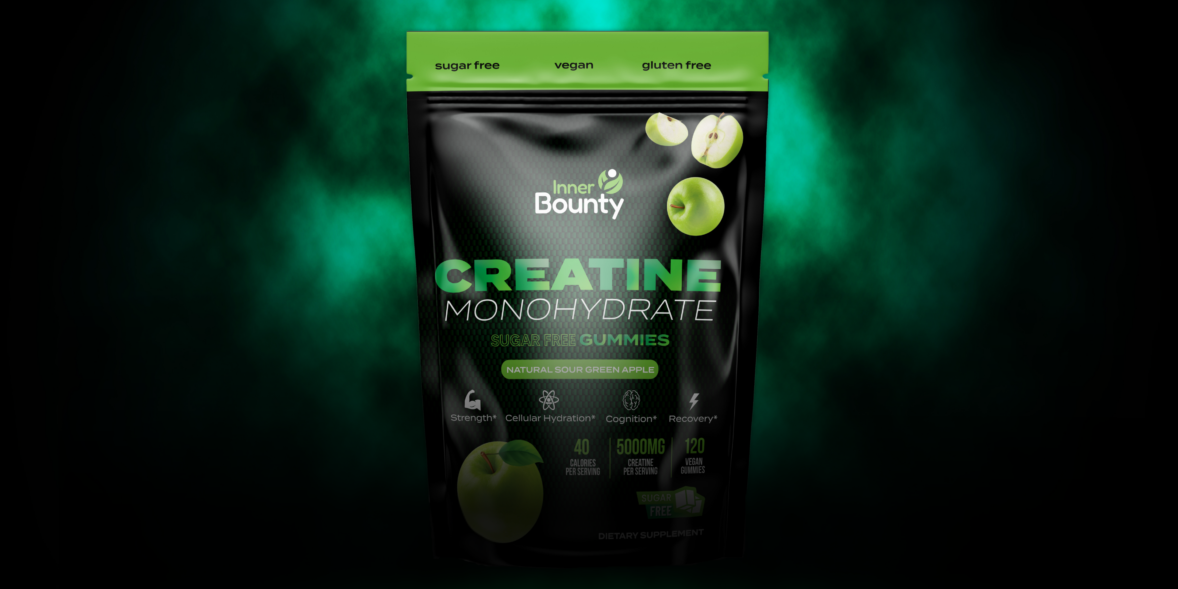 Creatine Monohydrate Gummies Sour Green Apple Gummies, Sugar Free 5G, 120 Count